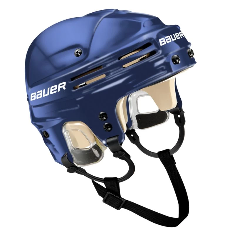 This Bauer 4500 Hockey Helmet features premium, dual-density Cellflex foam and a dual-ridge crown. Quick tool adjustments are possible with this CE, CSA and HECC-certified helmet that includes floating pro-ear loops and ergo translucent ear covers.