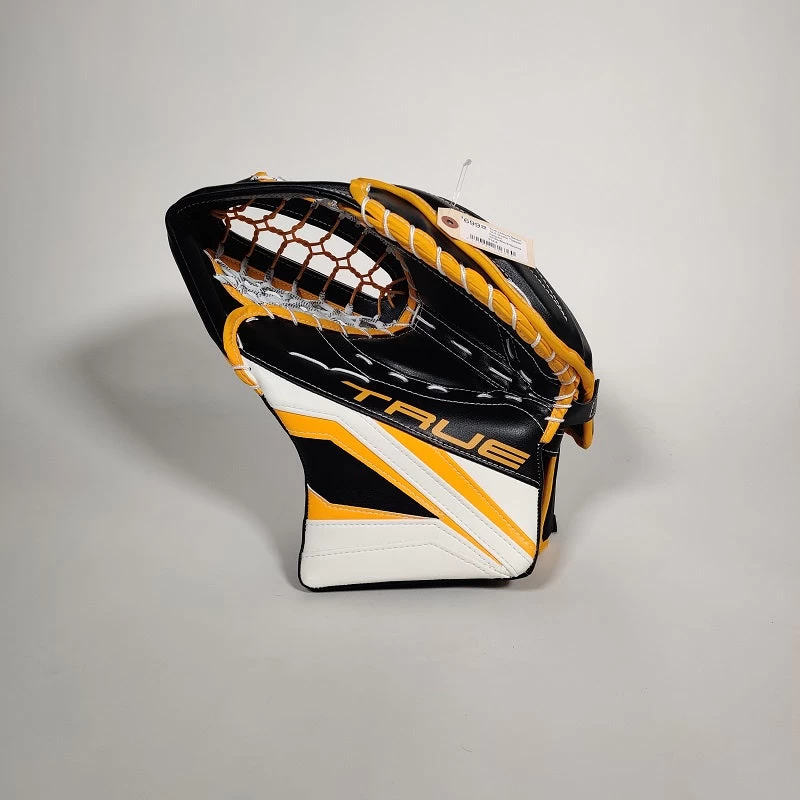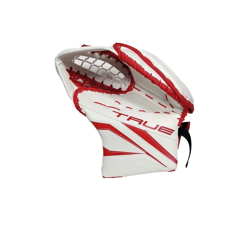 Continuing on the face of the glove, True has gone with a 75 degree break that is also know as a 600. This closure is design to help a goalie who is looking for a more natural closure that stands up tall and creates a large presentation to the shooter. You will also be able to see the double-T pocket that works perfectly with the closure, helping create that large visual presentation.
