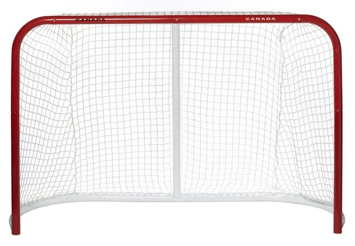 The steel pipes and polyester mesh are constructed specifically for use with ice hockey pucks.